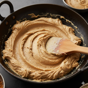 a rich, fudgy Indian dairy product made by slowly simmering full-fat milk in an open pan, continuously stirring and scraping until most of the water evaporates, resulting in a concentrated, semi-solid mass used as a base for sweets like peda, burfi, and gulab jamun. The process involves extensive heat desiccation, often using buffalo milk for its higher solids, resulting in a distinct texture and nutty, cooked flavor, traditionally prepared with simple tools like a ‘karahi’ (pan) and ‘khunti’ (ladle).